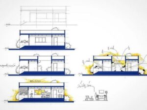 طراحی مقطع یا “سکشن” (Section) به ترسیم تصویری از یک ساختمان در جهت عمودی یا افقی گفته میشود که بخشهایی از آن بریده شده تا فضای داخلی و جزئیات آن نمایش داده شود. این نوع طراحی به معماران کمک میکند تا ارتباط بین بخشهای مختلف یک سازه را به طور دقیق ترسیم کنند.